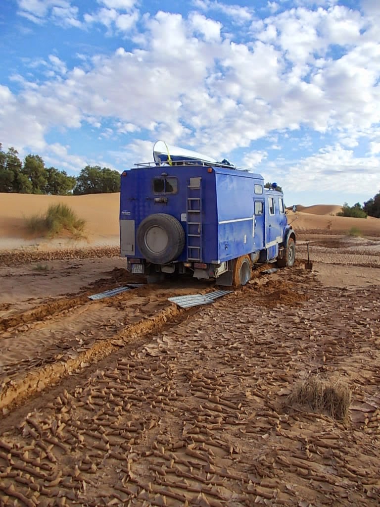 Für Klaus gibt es auch in Marokko genug Arbeit: Hier hat er sich mit seinem Blauen Wunder Allrad-LKW in den Schlamm gefahren. Seine Reisebegleiterin beschreibt die Tour in ihrem lesenswerten Blog.