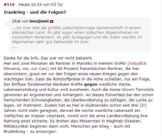 Was der Mann schon vor Jahren im Fernsehen sagte, gewinnt geradezu prophetische Gewißheit angesichts der Arabellion, Kriegen und Bruderkriegen im Irak, Afghanistan, Lybien, Syrien und drohend auch im Iran.