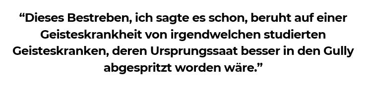 Mittlerweile geht es nicht um "Schutz des deutschen Blutes", in Deutschland, diesem "miesen Stück Scheisse", mittlerweile geht es darum, "deutsches Blut" aufzubessern.