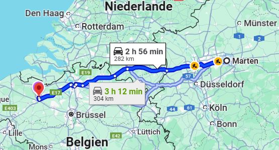 Nach dem Tanken in Aachen sollte es nach Frankreich gehen. Doch der Wagen sprang nur an, weil er an der Tankstelle ein wenig rückwärts ruckeln konnte. VW-Center Aachen war indiskutabel. Das VW-Center in Dortmund Dorstfeld will den Schaden untersuchen. Mein Bruder holt meine Sachen für kommende Nächte ab.