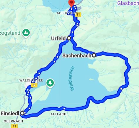 Über die Serpentinen der Kesselbergstraße muss man etwa 300 Meter höher nach Urfeld zum Walchensee radeln. Die Geschwindigkeit ist auf 60 km/h begrenzt, Motorräder dürfen ab 15.00 Uhr dort nicht mehr fahren. Fahrbahnteiler sollen verhindern, dass niemand auf die Gegenfahrbahn rutscht. Früher hatten Motorräder freie Fahrt. Am Wochenende rührten die Chirurgen in der Unfallklinik Murnau dann immer Gips an, um Knochenbrüche verunglückter Raser zu richten.